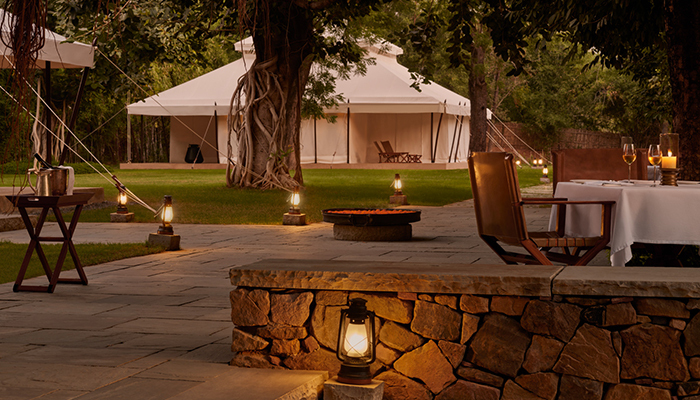 Near Ranthambore, Aman-i-Khas features elegant Mughal-inspired tents complete with soaking tubs and personalised service, delivering privacy and understated luxury in the heart of the wilderness.